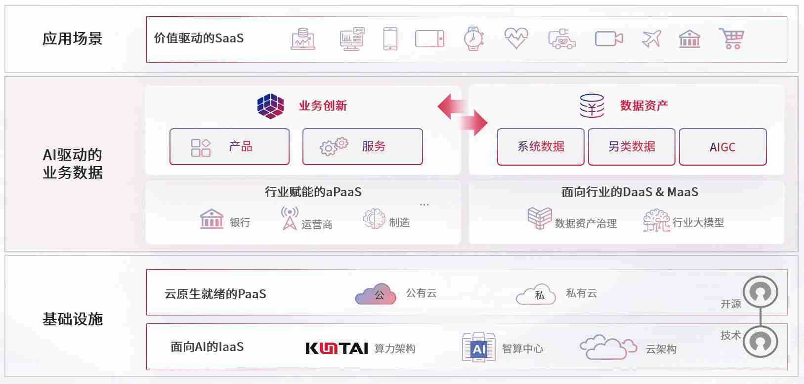 数字时代,,,围绕企业数字化转型的关键要素,,z6com尊龙数码开创性的提出数云融合战略和技术体系框架,,,,着力在云原生、、、、数字原生、、、、AI原生和信创产业上架构产品和服务能力,,为处在不同数字化转型阶段的快消零售、、汽车、、、、金融、、、、医疗、、、、政企、、教育、、、、运营商等行业客户提供泛在的敏捷IT能力和融合的数据驱动能力,,构建跨界融合创新的数字业务场景和新业务模式,,助力企业级客户建立面向未来的核心能力和竞争优势,,,全面推动社会的数字化、、、智能化转型升级。。。。