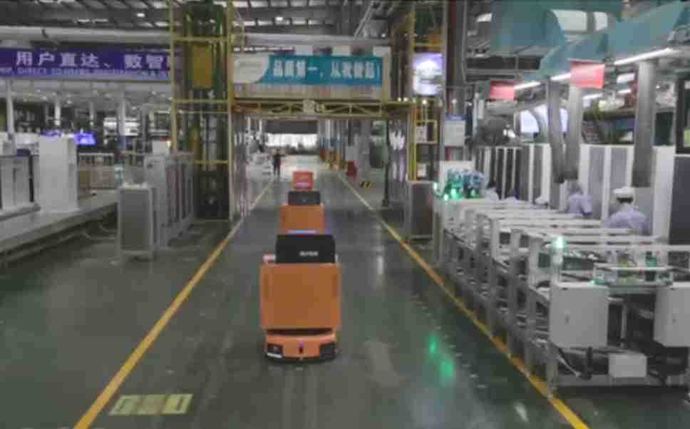 为车载冰箱物流配送打造的智能解决方案,,包含产中物流通过潜伏举升AMR搬运至线边,,产后成品物流智能仓储,,流程包含产中物流智能齐套入库,,线边安灯叫料AMR智能配送至线边,,,成品入库、、出库,,,通过无人堆高车机器人,,智能仓储管理替代人工作业管理,,,实现更高存储、、、、更高效率、、、、更具柔性化的解决方案。。。。